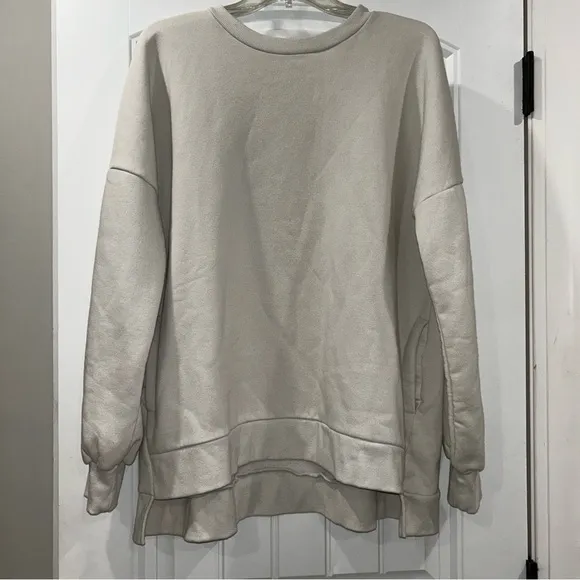 Pullover sweatshirt Long sleeves Pockets on the sides Hangs a little longer in the back Gently u... Show more