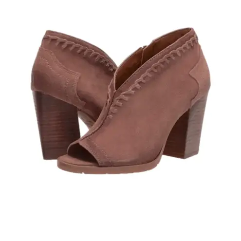 Size 7.5 Fast shipper 💕 Fabric Type 100% Leather Sole Material Synthetic Closure Type Zipper About this item suede shootie imported Description Luxe materials and artful detailing make this peep-toe bootie a standout. Suede and nappa leather upper Side zip closure Open toe 3.5 inch heel Synthetic outsole