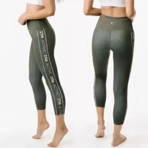 ZYIA Olive Logo Stripe Light n Tight Hi Rise Capri size 2 Green - $29 - From Isabel